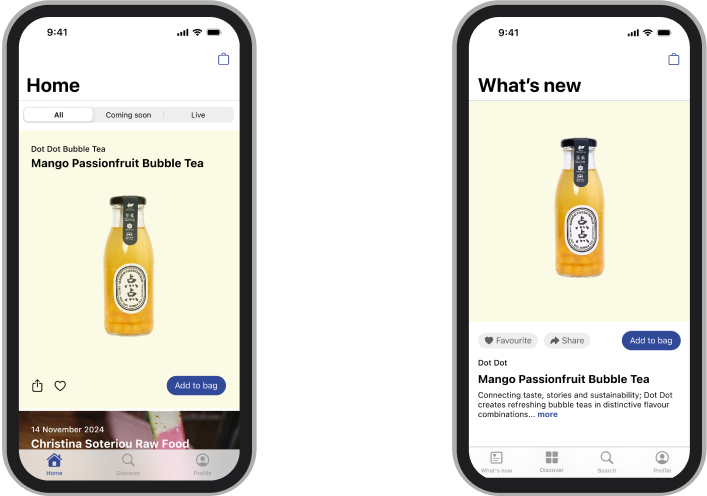 I created 2 prototypes to test with DELLI customers. There were some key differences between the prototypes that we were keen to test: the navigation, the feed and my profile.